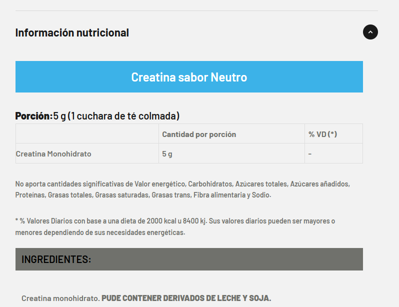 - Formula pura con un solo ingrediente: CREATINA MONOHIDRATO.