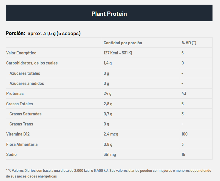 Plant Protein® es tu blend ideal de proteína de origen vegetal de máxima calidad que fue desarrollada para aquellas personas que eligen una alimentación vegana o vegetariana. Es una excelente opción para completar el aporte necesario de proteínas diarias de cualquier persona sobre todo en algunas comidas del día que muchas veces se realizan fuera del hogar. Ademas es recomendada como suplemento para quiénes realicen actividad física ya que aporta 24 g de proteína por toma favoreciendo la recuperación y el mantenimiento de la masa muscular.